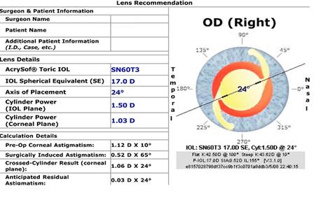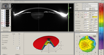 Where there is more than 0.75 Units ( Dioptres) of astigmatism we inverstigate this furhter with a Pentacam measurement , a fine optica sassement of degree and charateristics of astigmatism. This allows us to fully judge the best style of implant ( intra-ocualr kens as well as its precise measurement we need to determine for your maximal clarity and reduced dependance of spectacles after surgery